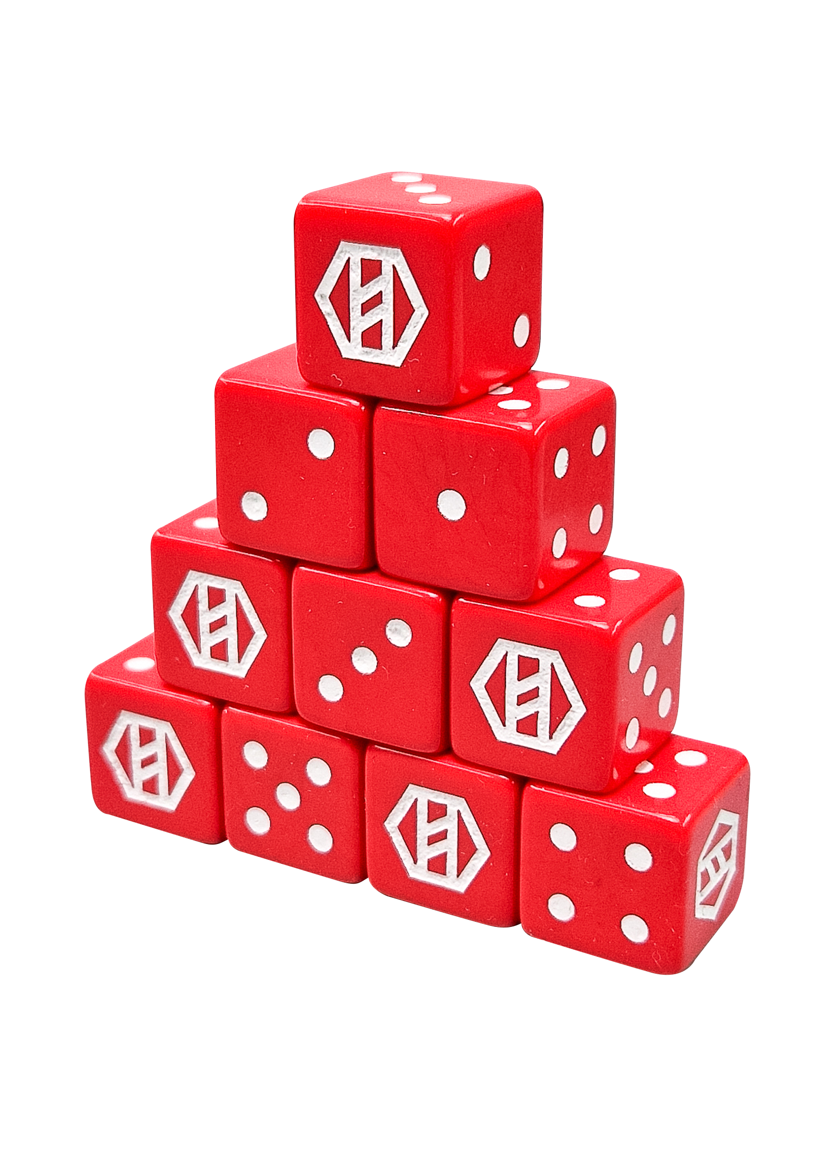 You can't order small batches of custom dice for obvious reasons, so I ordered the minimum I could and that means I have far more than I need. So I've put them up here in packs of 10 for anyone who might be playing mu custom league The Higher Dorurgin Corporation.